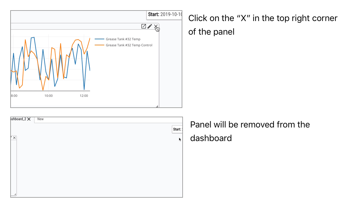 Panels can be deleted by clicking on the X icon in the top right corner of the Panel