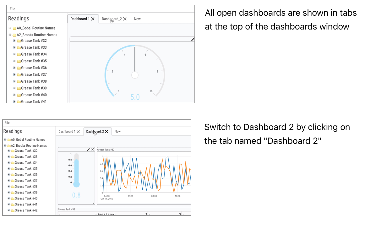 Dashboard – an arrangement of Panels containing readings