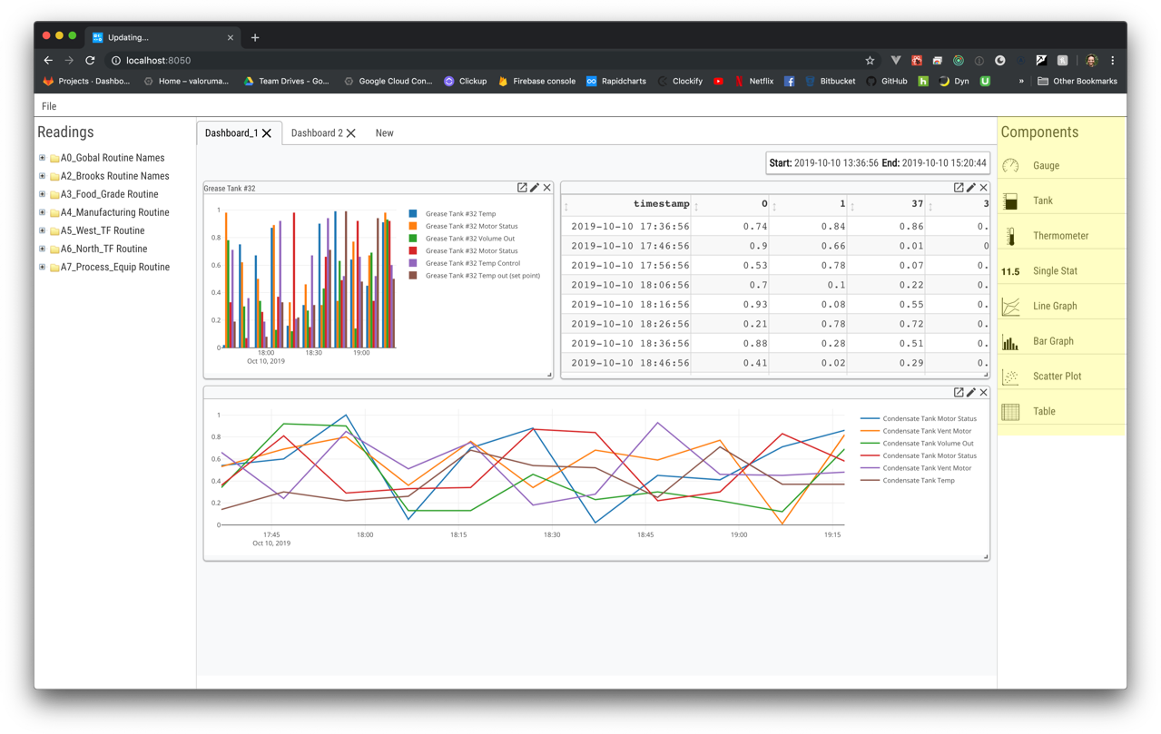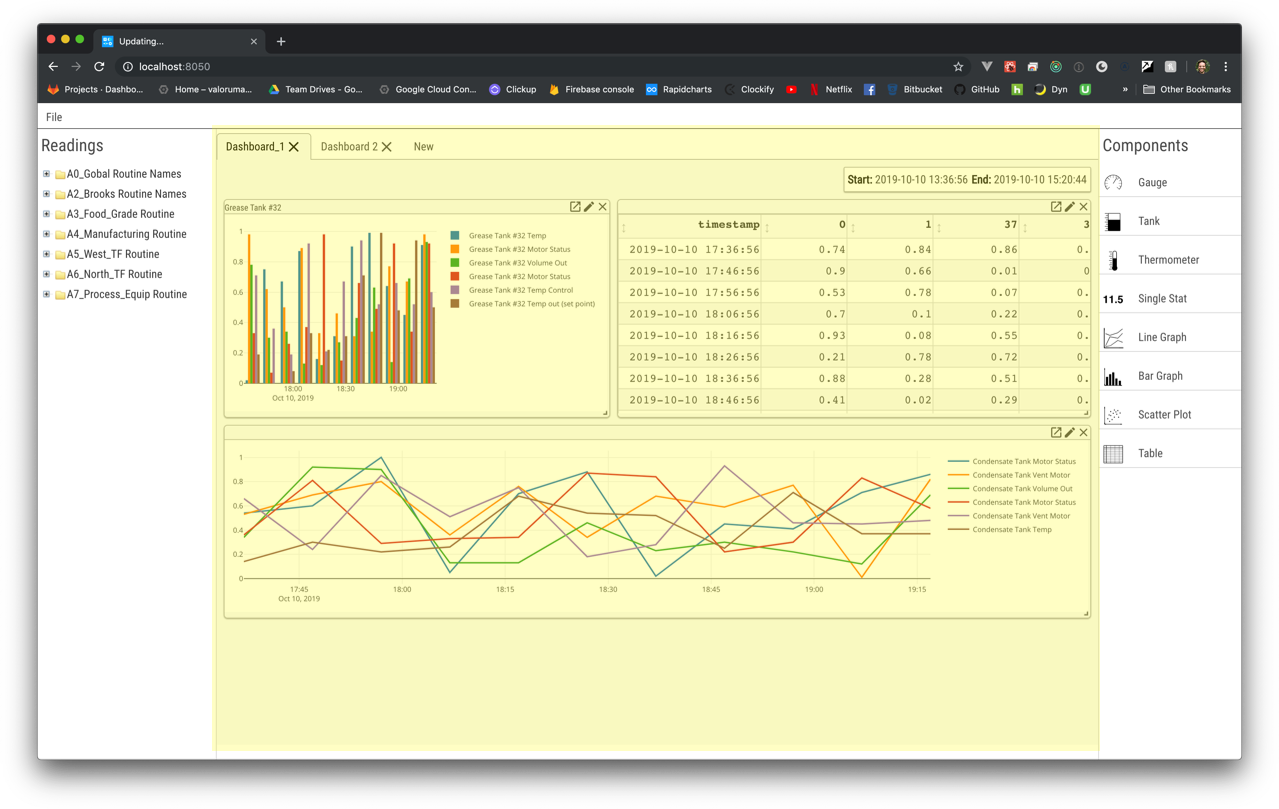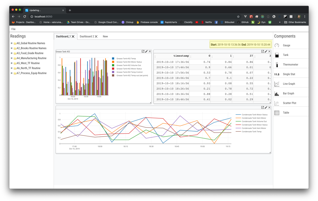 Time Window – controls for the start and end time for all reading data – one per Dashboard
